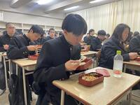 4月10日(金)、今日は学校案内や対面式など朝から一年生も慌ただしい日です。そんな寮生のお昼は毎日食堂から届けられるお弁当です。栄養を補給して午後からの部活動紹介に臨みました。